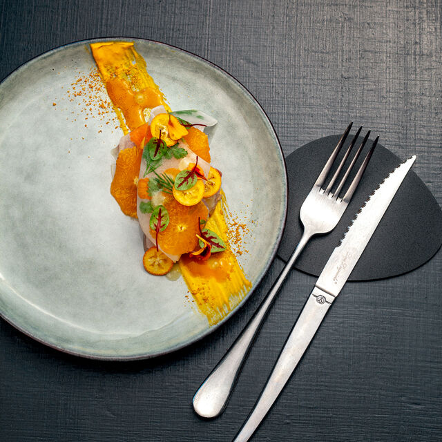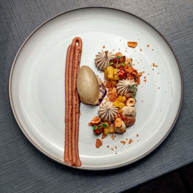 Amuse-bouches / Entrée / Poisson / Viande / Granité / Dessert / Mignardises